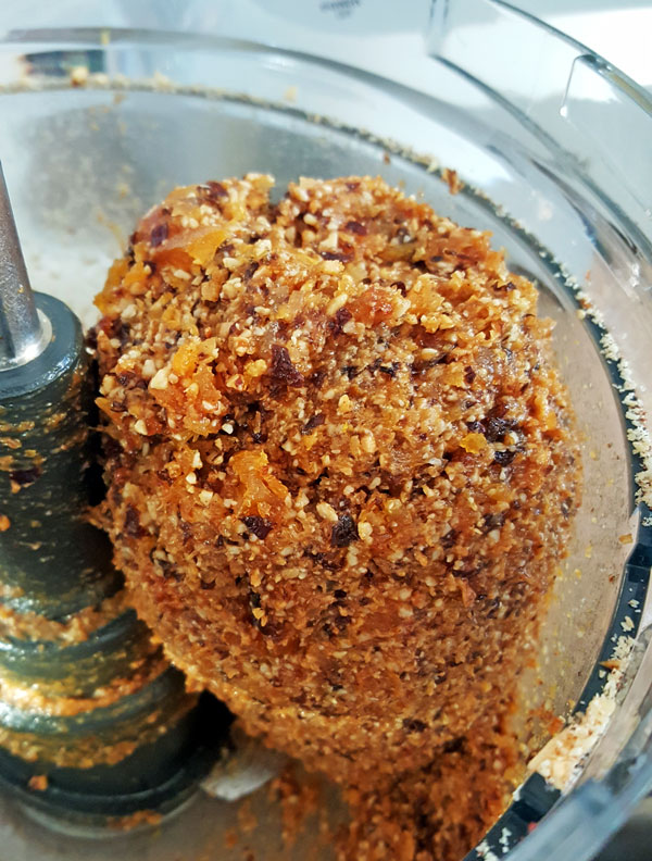Making Sugar Plums is super simple! Combine everything in a food processor and mix until it forms a big ball. Then scoop it out, roll into balls, and roll into sugar. That’s it!